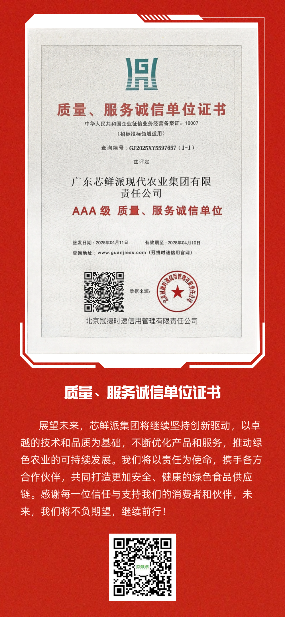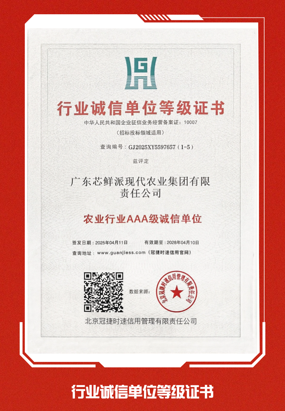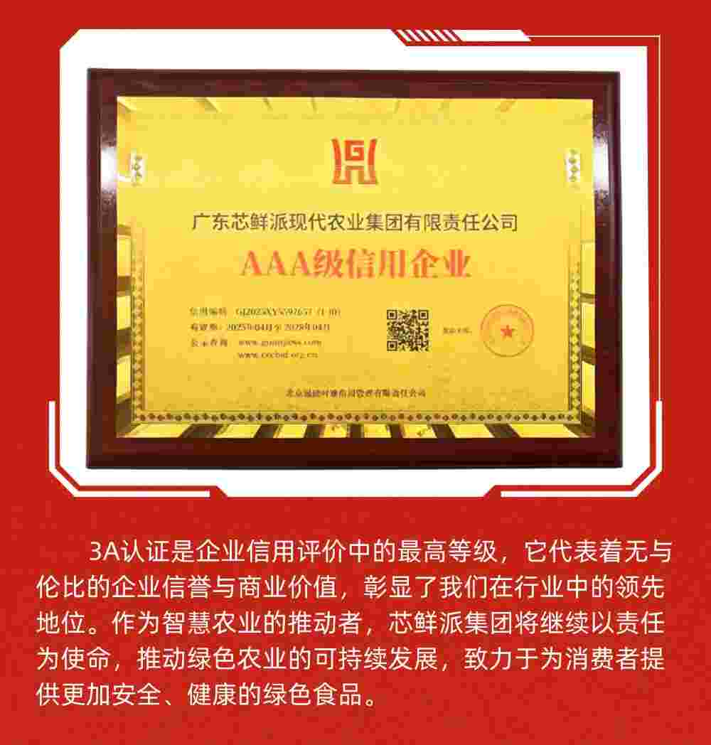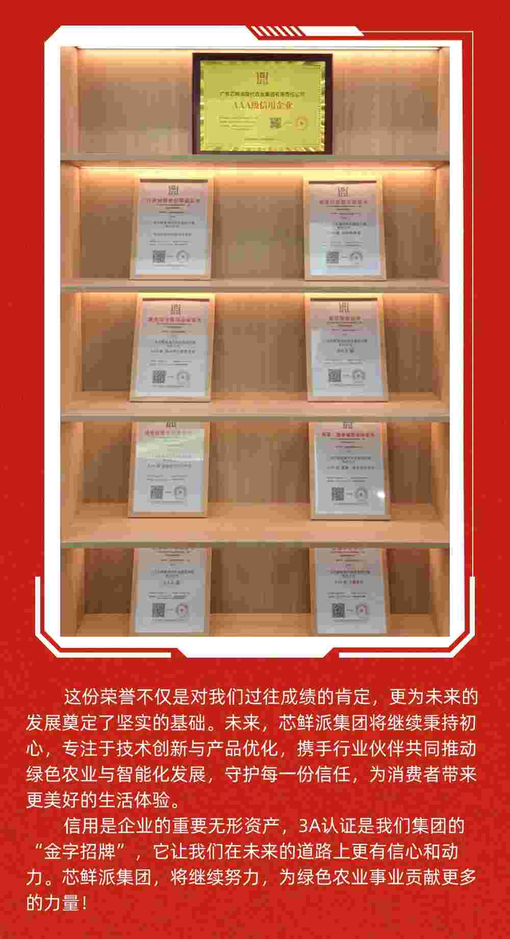荣耀加冕!芯鲜派集团荣获AAA级企业信用认证,砥砺前行,开启绿色农业新征程!