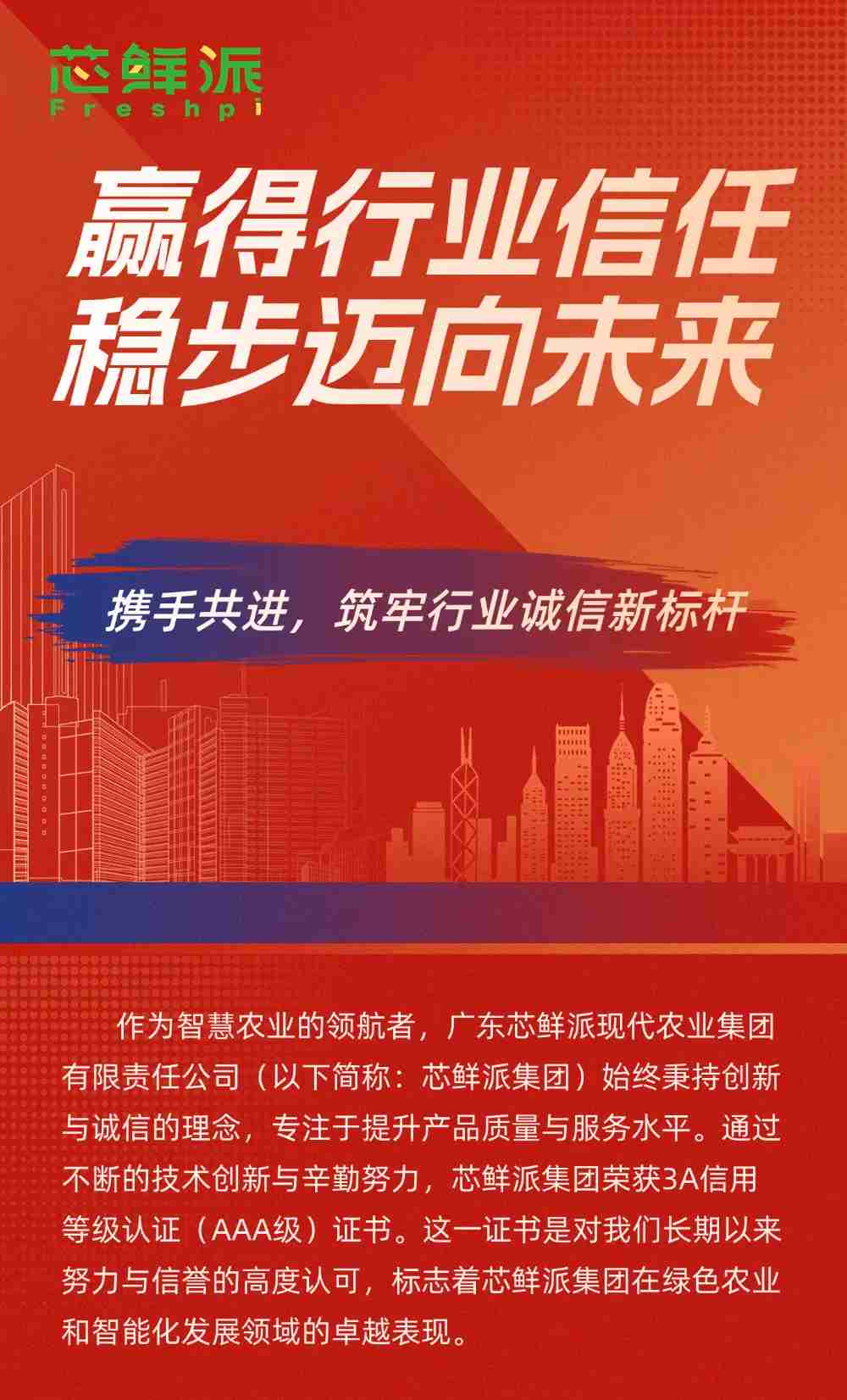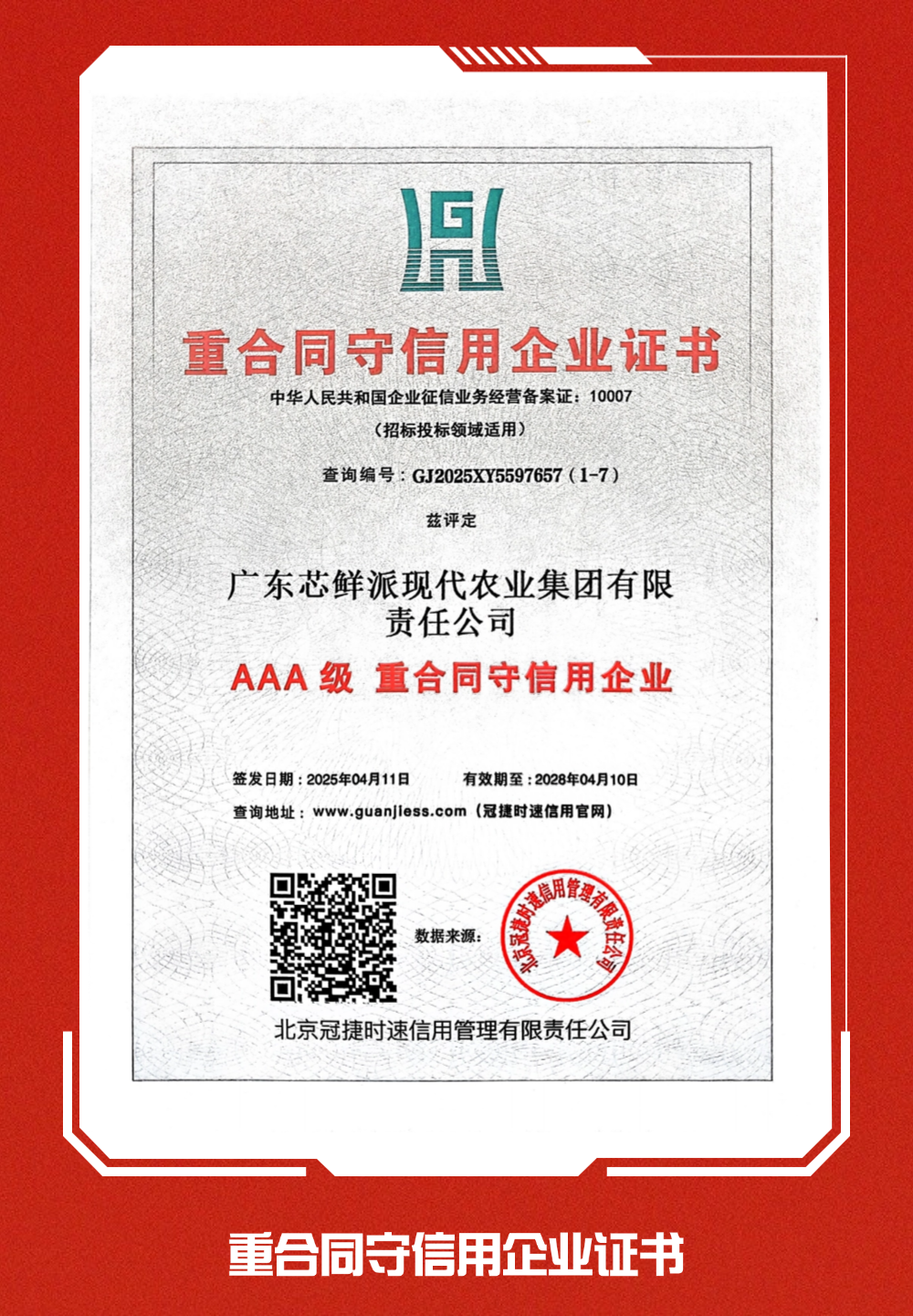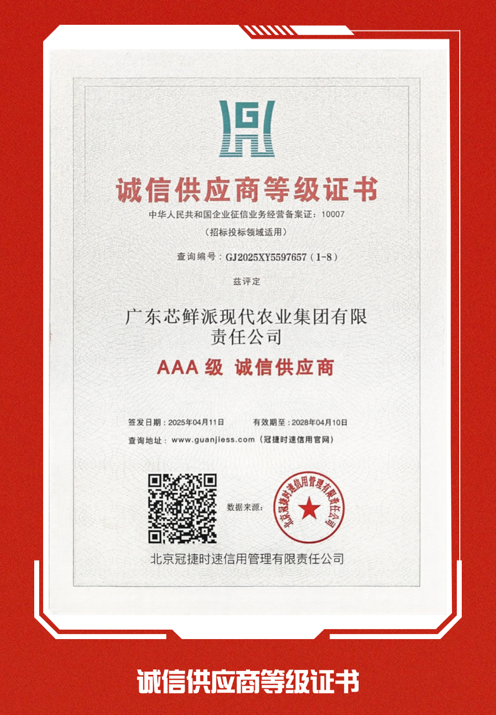 荣耀加冕!芯鲜派集团荣获AAA级企业信用认证,砥砺前行,开启绿色农业新征程!